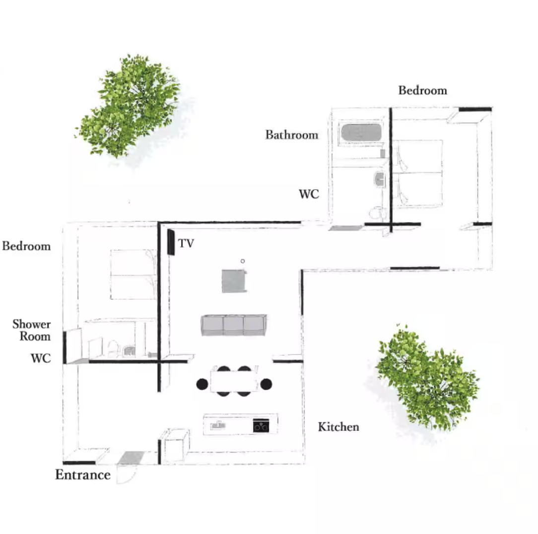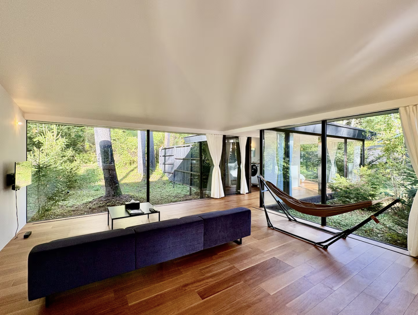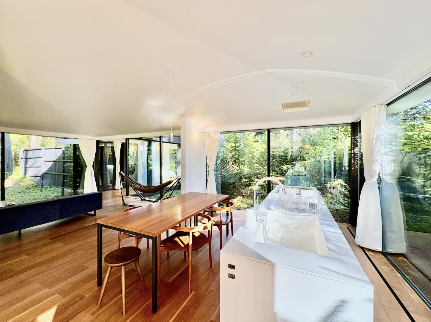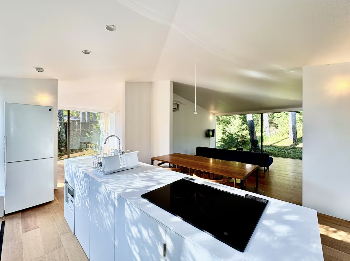 Our facility is located approximately 7min drive from Karuizawa Station. Famous as a resort town, Karuizawa offers abundant nature throughout the seasons, and guests can enjoy shopping, strolling along Kyu-Karuizawa Ginza Street, and dining made with fresh ingredients. Enjoy a luxurious stay in the all-glass "Mori no Hanare."